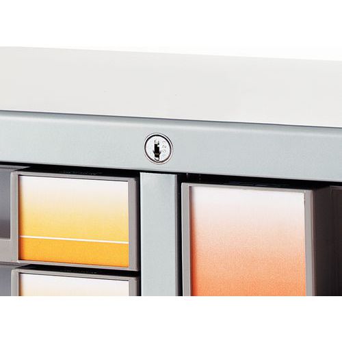 | Descrizione | Serratura per armadio e bancone, Struttura, colore: Grigio, Tipo: Per cassettiera a 3 colonne |