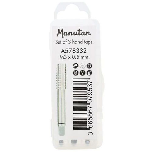 Set 3 maschi manuali, Ø: 0.5 mm, Lunghezza: 40 mm, Modello: M3, Uso: Foratura, Materiale: Acciaio