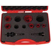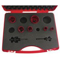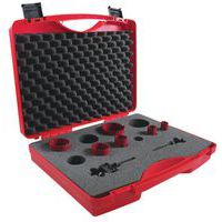 Valigetta composta da 6 seghe a tazza in acciaio bimetallico. Ideale per installazioni sanitarie. Profondità di taglio 38 mm. Tagliente in acciaio rapido HSS, corpo solido in acciaio, eccentricità minima. I fori laterali della sega a tazza consentono una facile rimozione dei trucioli e dei pezzi tagliati. La dentatura a passo variabile offre un taglio senza sforzo, regolare ed omogeneo.