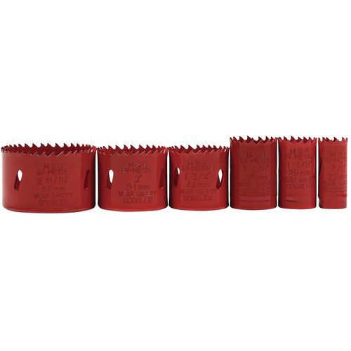 | Descrizione | Set da 6 seghe a tazza bimetalliche HSS Ø 22 a 68 mm, Uso: Taglio Foratura |