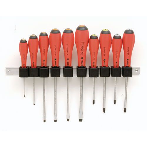 | Descrizione | Set di 10 cacciaviti su barra, N. di pezzi: 10, Rif. Fabbricante: 9128010001, Tipo punta: Piatta |