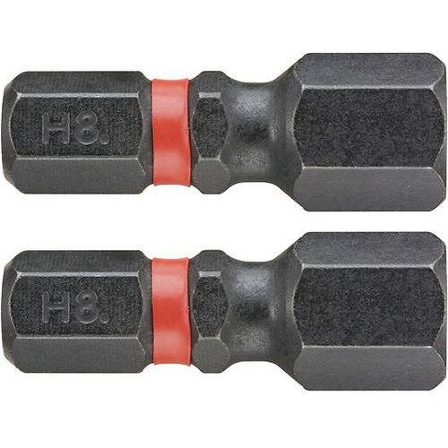 Set di 2 punte ergonomiche esagonali. Da utilizzare con avvitatori a impatto. Geometria della punta ottimizzata per una regolazione completa dell'attacco e meno cam-out. Utilizzare con il supporto per punte a torsione per la massima durata.