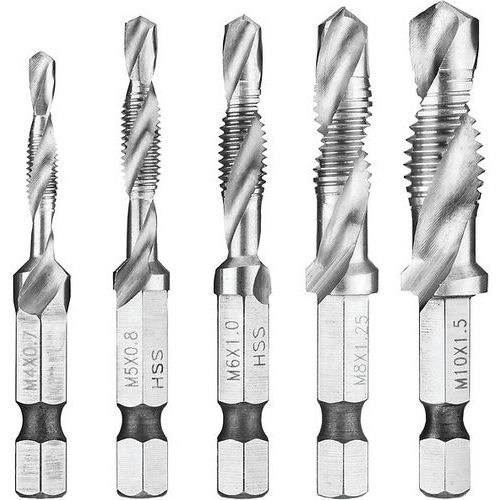 | Descrizione | Set di 5 punte per maschiare, Lunghezza: 7.1 cm, Uso: Foratura, Materiale: Acciaio |