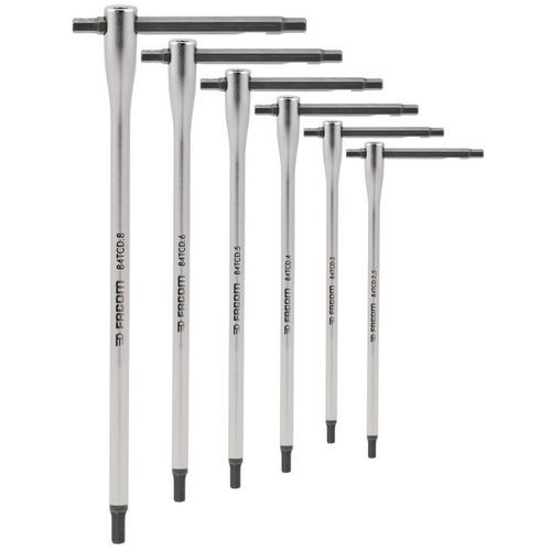 | Descrizione | Set di 6 chiavi a T con barra scorrevole, Cavità a vite: Presa esagonale, N. di chiavi: 6 |