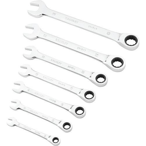 | Descrizione | Set di 7 chiavi miste a cricchetto, N. di chiavi: 7, Ratchet reversibile: no, Finitura: Cromato |