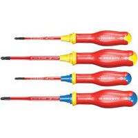 Per la tua sicurezza, ogni cacciavite viene testato singolarmente a 10000 Volt per 10 secondi Approvato VDE, alla fine del ciclo di produzione, il profilo Slim offre il 27% in più di portata. Trattamento termico in linea: + 100% di durata e + 100% di resistenza. Materiale impugnatura: impugnatura morbida per un maggiore comfort e comunque resistente agli agenti chimici. Trattamento Tri-coating della lama (Zinco-Nichel-Cromo): 4 volte più resistente alla corrosione. Ergonomia ottimizzata dell'impugnatura: + 10% di coppia. Marcatura laser: per una migliore resistenza all'usura. Lavorazione delle impronte a controllo digitale: migliore adattamento della vite aumentando il trasferimento di coppia e riducendo l'usura.