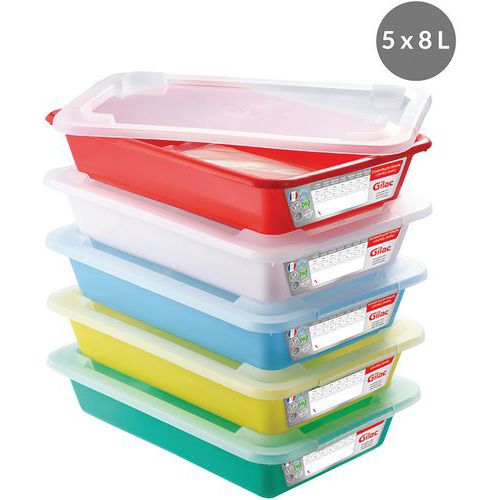 | Descrizione | Set di contenitori per campioni di controllo pietanze con coperchio, Capacità: 8 L, Incastrabile: si |