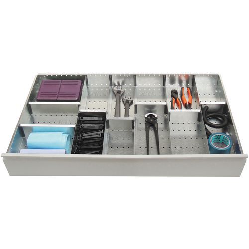 Separatori molto resistenti per dividere lo spazio nel vostro armadio Perfo in maniera flessibile. Potete personalizzare la disposizione degli scomparti grazie ai separatori e agli intercalari rimovibili.