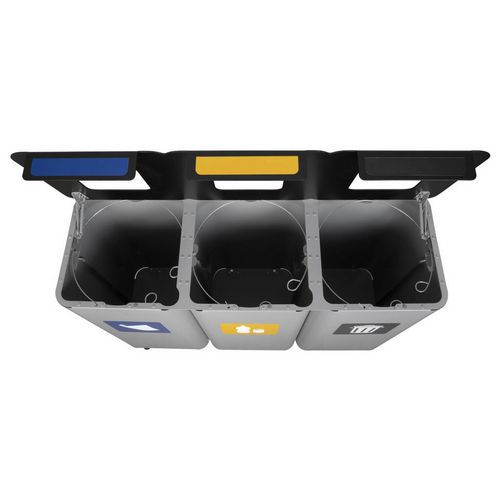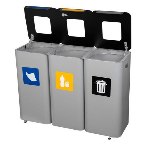 Set per la raccolta differenziata, in metallo e modulabile, Capacità: 210 L, Apertura: Intaglio