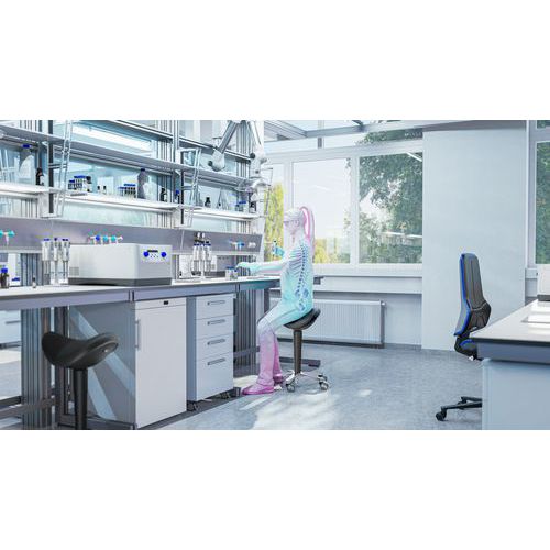 | Descrizione | Sgabello a sella Bimos con rotelle, Tipo di base: 5 piedi, Tipo di piede: Rotelle, Seduta |