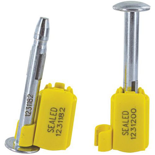 | Descrizione | Sigillo a doppia numerazione per container, Colore: Giallo, Lunghezza totale: 79 mm, Asta Ø: 8 mm, Passaggio |