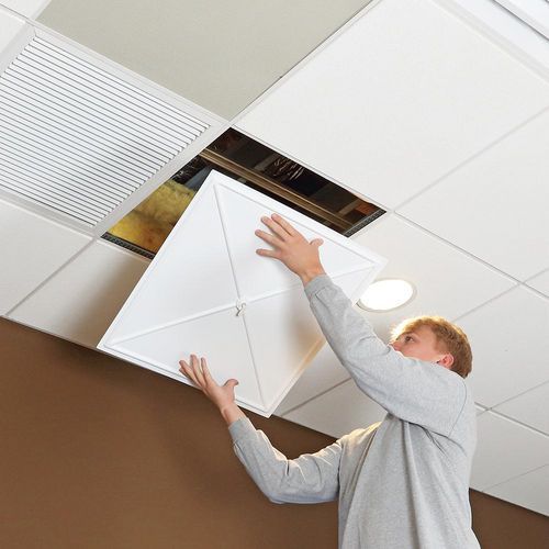 Rimuovere le piastrelle danneggiate e sostituirle con un pannello di deviazione delle perdite per scaricare i liquidi. Riduce al minimo i pavimenti bagnati, i danni alle apparecchiature e le interruzioni per i lavoratori. Cattura le perdite e le gocce e le scarica in un serbatoio di scarico o di stoccaggio utilizzando il tubo in dotazione. Include un tubo di scarico e fascette per fissare il tubo alle griglie a soffitto. Portata di 3,8 L al minuto con il tubo in dotazione.