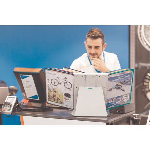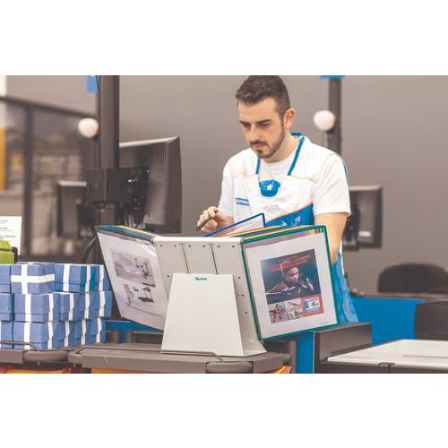 Questo supporto a parete consente di recuperare facilmente documenti importanti. Il supporto da scrivania protegge i documenti dalla polvere. Particolarmente adatto ad ambienti industriali.