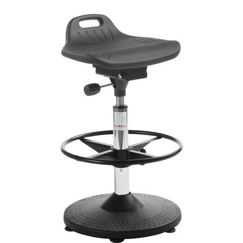 Sgabello con base a tromba in plastica e sedile imbottito in poliuretano o espanso. La seduta è piacevolmente morbida e ideale sia per un breve periodo che per un periodo più lungo. Lo sgabello è leggero e facile da spostare. Facile regolazione dell'altezza. Il meccanismo Easy Seat consente all'utente di regolare continuamente l'angolazione del sedile. La seduta imbottita è disponibile in diversi rivestimenti e colori. Meccanismo Easy Seat. Regolare continuamente l'angolazione del sedile tra 12° in avanti/5° all'indietro.