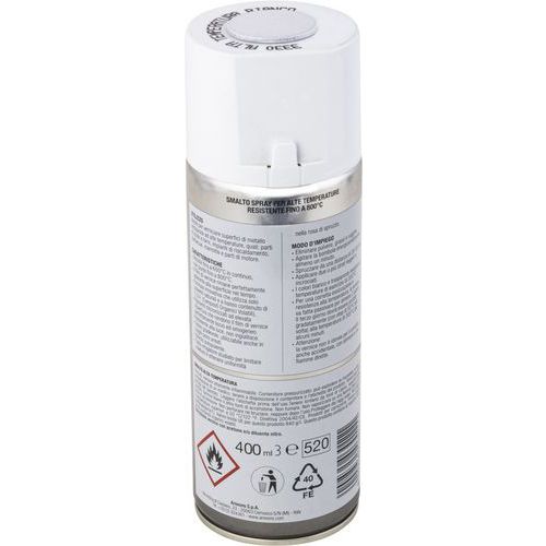 Smalto spray 100% acrilico studiato appositamente per verniciare superfici di metallo sottoposte ad alte temperature, quali parti di stufe e forni, impianti di riscaldamento, barbecue, marmitte e parti di motore.