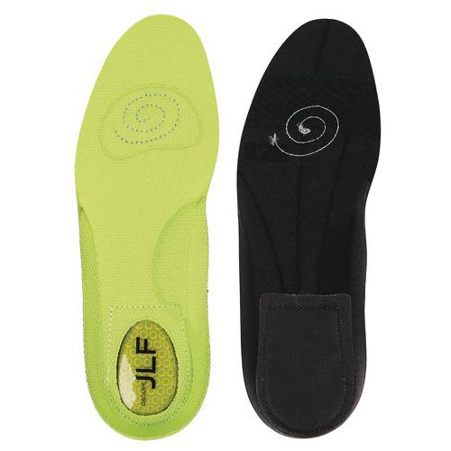 Soletta termoformata anatomica per un comfort ottimale del piede Capsula in gel per assorbire gli urti al livello del tallone. Trattamento S3F® che previene lo sviluppo di batteri e funghi responsabili delle micosi. Soletta aerata e confortevole in grado di assorbire efficacemente il sudore. Antistatico.