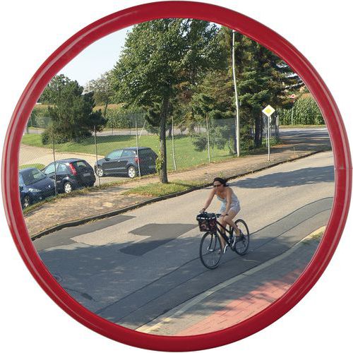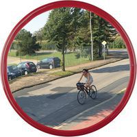 Specchio di sorveglianza per esterni telaio rosso, Distanza di osservazione: 15 m, Forma: Rotondo, Struttura Specchio di sorveglianza per esterni telaio rosso, Distanza di osservazione: 15 m, Forma: Rotondo, Struttura
