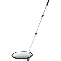 Specchio per ispezione per il controllo dei veicoli in aree d'accesso o per il controllo di macchine e veicoli. Disponibile con o senza luce e rotelle. Dotato di braccio telescopico in alluminio da 40 a 110 cm per facilitare l'ispezione. L'apparecchiatura di illuminazione a led e/o le rotelle facilitano il controllo da parte di polizia, forze armate o altre agenzie di sorveglianza. Rotelle dotate di rivestimento in poliuretano morbido e cuscinetti a sfere per il facile utilizzo. Certificato TÜV.