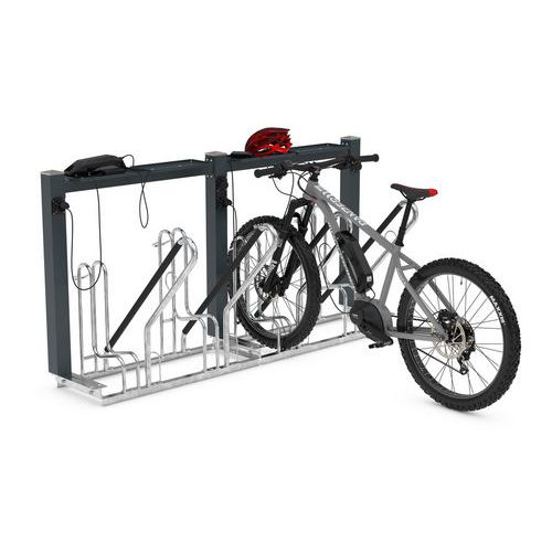 Stazione di ricarica per parcheggiare le biciclette 4500 XBF, 4700 XBF, 2500 XBF e 0500 XBF, offre non solo un parcheggio custodito, ma anche la possibilità di ricaricare la bicicletta elettrica direttamente, sia nelle aree pubbliche, nei parcheggi aziendali o nelle residenze. Una presa standard per posto garantisce l'alimentazione di tutte le biciclette e riduce al minimo i costi di manutenzione. Un concetto lungimirante che si integra perfettamente con le infrastrutture esistenti e offre un reale valore aggiunto.