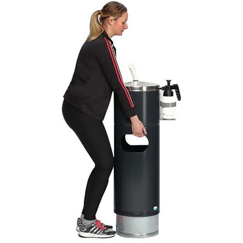 - Stazione igienizzante con dispenser di carta, porta flacone e secchio interno.