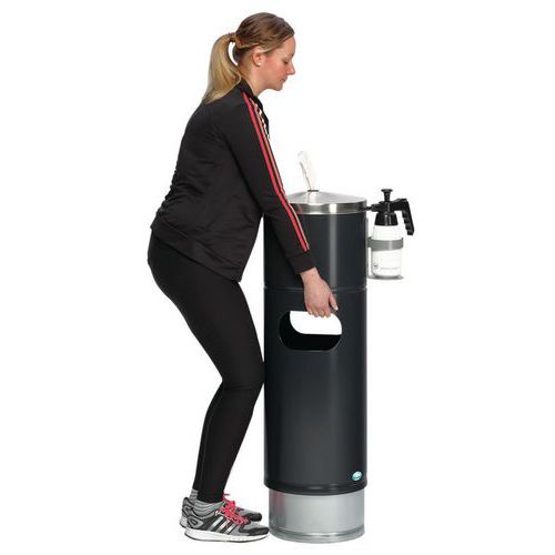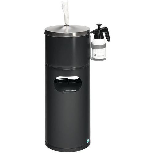 Stazione igienizzante per pattumiera con distributore di carta e portabottiglie