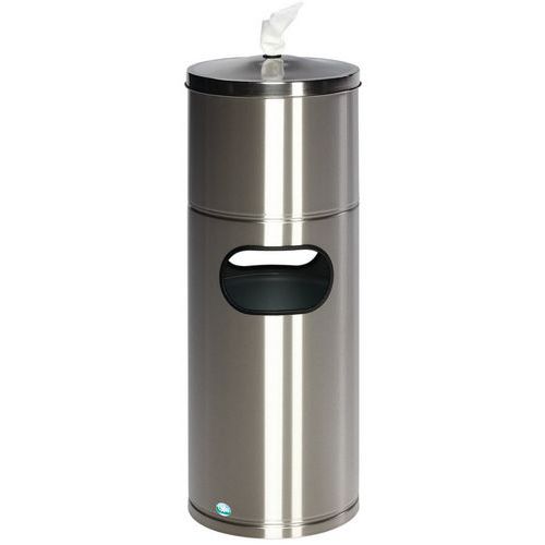 Stazione igienizzante per pattumiera con distributore di carta e portabottiglie