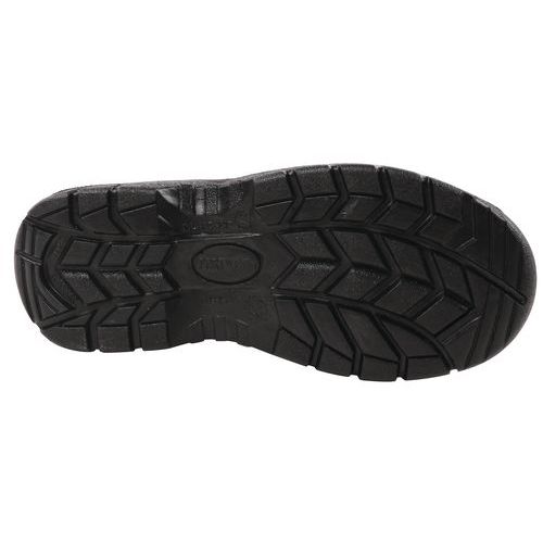 Lo scarponcino combina la protezione totale S3 con il composito 100% privo di metallo. Leggero con suola in PU/gomma resistente allo scivolamento e tallone con assorbimento di energia.