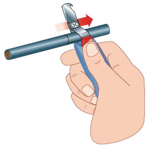 Spintore ergonomico riduttore di forza. Lama di ricambio inclusa nel corpo. Rotella di regolazione facilmente accessibile. Lama autogirevole. 985955 modello a lama dritta. 985956 modello a lama uncinata. 986061: Set 5 lame autogirevoli per spellafili 985951 - 985952 - 985953 - 985954 - 985955 - 985956.