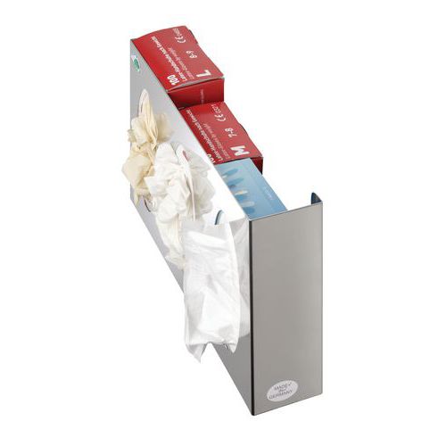 Supporto a parete per guanti o fazzoletti semplice, doppio o triplo. Realizzato in acciaio inox di alta qualità, opaco, spazzolato.