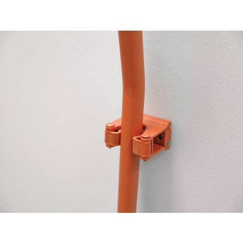 Modulo Clip Grip ideato per sospendere attrezzi per la pulizia dotati di foro per essere appesi a parete. Fissato sulla doppia base/sul doppio distanziatore dal lato sinistro o destro. Il modulo Clip Grip può supportare attrezzi con un diametro compreso tra 28 e 33 mm. Supporto pratico e semplice da smontare per agevolare le operazioni di pulizia o sostituzione.