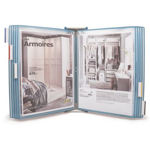 Questo supporto a parete è costituito da un supporto che può contenere 10 cartelline.