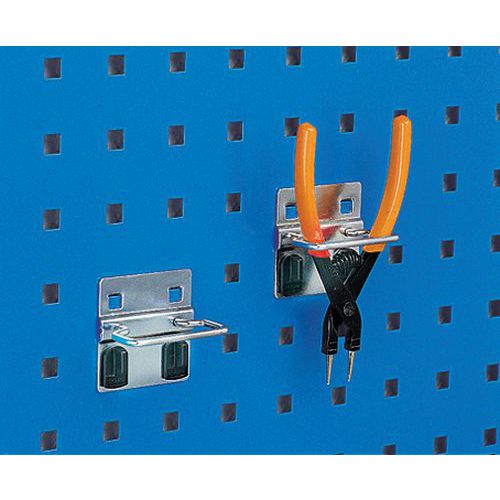 Utilizzate questo supporto per appendere le pinze. Modello robusto spesso 6 mm. Fissate il supporto in un attimo con le clip di sicurezza in plastica.