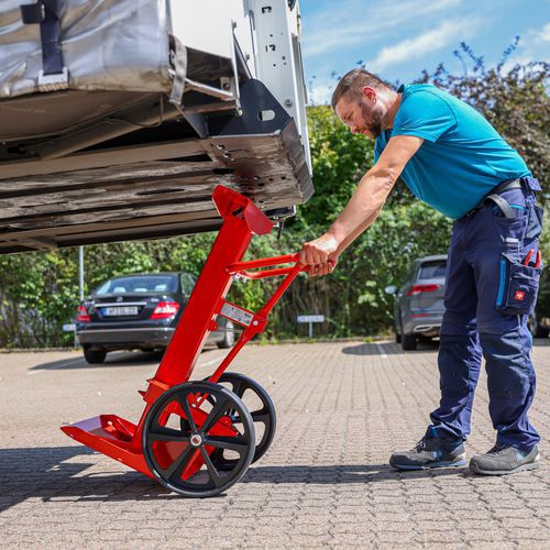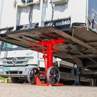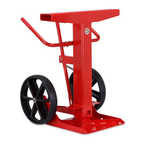 Certificazione TÜV-GS. Portata fino a 40 t. Altezza regolabile da 900 a 1022 mm. Bloccabile con lucchetto. Facile e sicuro da utilizzare. Manici scorrevoli per una maggiore maneggevolezza.