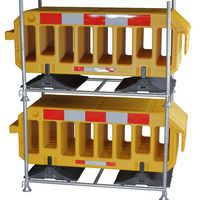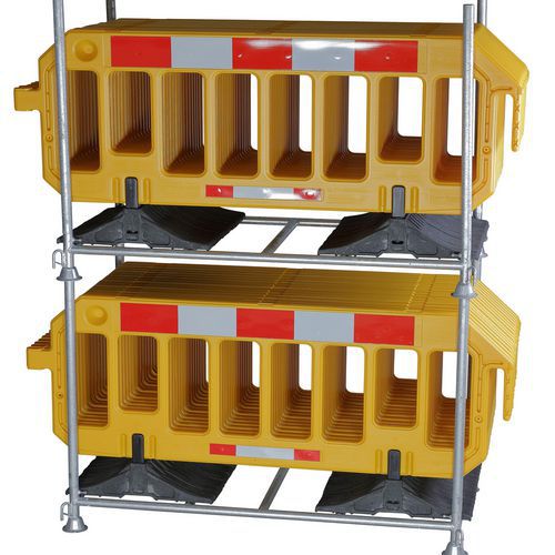 Rivestimento a polvere. Ottimizza lo stoccaggio e il trasporto delle barriere di sicurezza. Può essere sollevato utilizzando una forca per pallet per il trasporto. Per l'utilizzo all'interno o all'esterno.