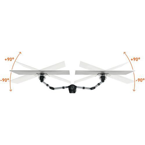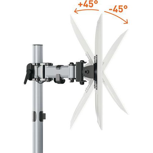 Braccio di supporto per 1 schermo con doppio sistema di fissaggio incluso (passacavi e pinza).
