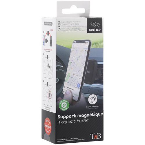 | Descrizione | Supporto per smartphone magnetico Premium per griglia d'aerazione -T'nB, Materiale: ABS, Colore: Nero |
