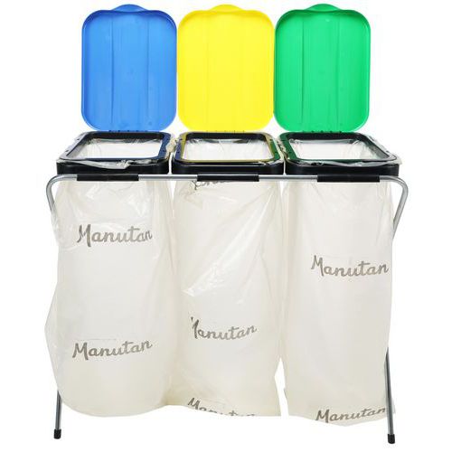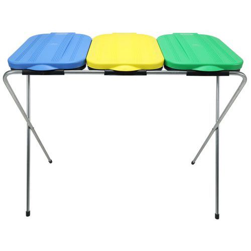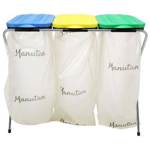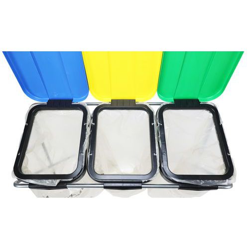 Portasacco a 3 unità con struttura in metallo pieghevole e coperchi in plastica. Comodo in tutti gli ambienti, sia per gli eventi che per i vostri locali. Compatto e robusto, questo portasacco per spazzatura è la soluzione economica per raccogliere il maggior numero possibile di rifiuti sul posto di lavoro. Realizzato in tubi metallici, questo modello combina resistenza e stabilità.