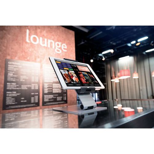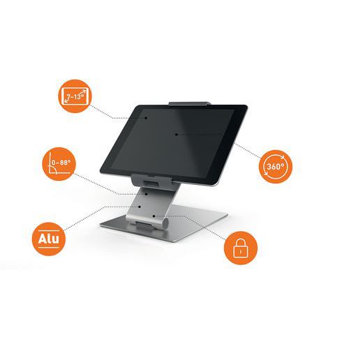 | Descrizione | Supporto tablet da tavolo, Carico max.: 1 kg, Materiale: Alluminio, Altezza: 242 mm |