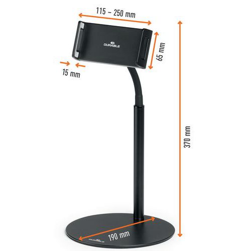 | Descrizione | Supporto Twist Table per tablet e smartphone, Ø: 190 mm, Spessore: 15 mm, Altezza: 370 mm |