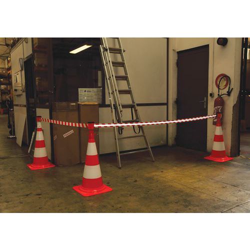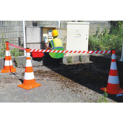 Composto da una testa con cinghia 50 mm x 3 m e da un supporto di adattamento al cono arancione fluo.