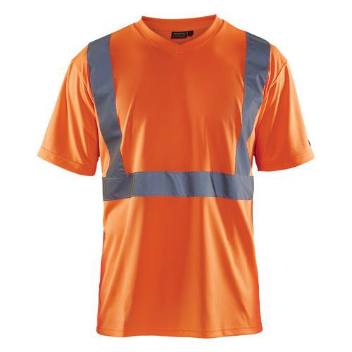 T-shirt ad alta visibilità con scollo a V arancione fluorescente