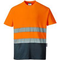T-shirt in cotone bicolore arancione/blu navy, Materiale tessile: Cotone e polyestere, Colore: Blu/arancione
