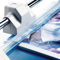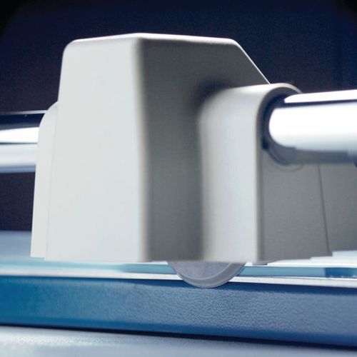 - Griglia di formati DIN sul piano per facilitare l’allineamento del materiale da tagliare.