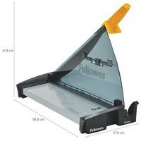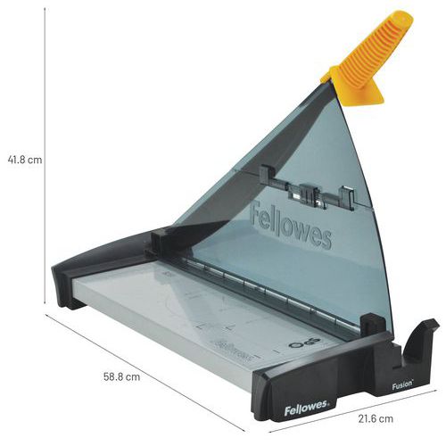 La taglierina Fellowes è facile da utilizzare grazie alla lama in acciaio molto resistente e al pratico manico. Una pinza manuale per carta riduce i movimenti della carta durante il taglio. Ideale per attività di taglio fino a 10 pagine. La scala graduata sulla base metallica permette di tagliare con una precisione eccezionale. Stabile grazie ai piedi anti-scivolo. Assolutamente sicura grazie all'ampia protezione supplementare della zona di taglio
