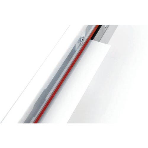 Guida laterale in metallo con placchetta di finecorsa regolabile.