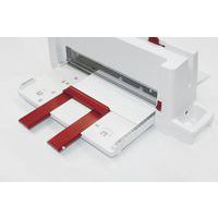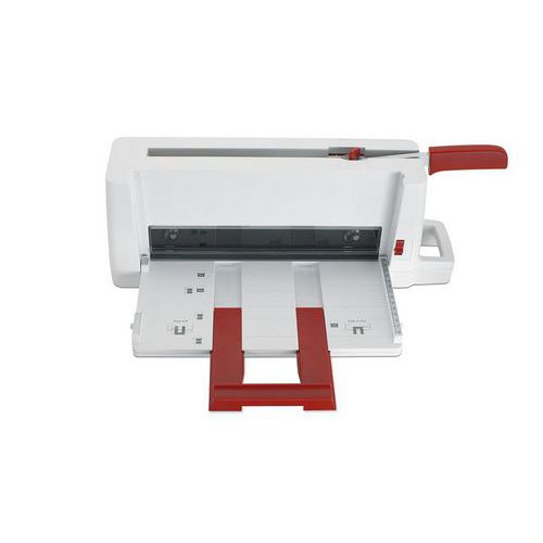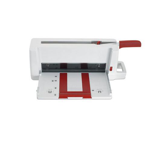 - Finecorsa posteriore scorrevole e reversibile con nottolini d'arresto per tagliare fogli nei formati A5, B5 o A4.