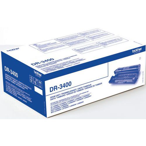 | Descrizione | Tamburo DR3400 per stampante laser e multifunzione, Capacità (n. di pagine): 50000, Rif. Fabbricante: DR3400 |