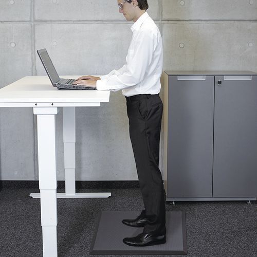 Tappeto antifatica eccezionalmente morbido e comodo per coloro che lavorano in piedi in posizioni prevalentemente statiche. Ideale per postazioni Sit-Stand e postazioni di lavoro singole. La morbidezza dell'espanso garantisce un effetto di rimbalzo che garantisce il mantenimento dell'equilibrio e genera micromovimenti benefici per il flusso sanguigno. Questo materiale naturalmente resiliente si adatta perfettamente alla forma del piede per garantire la perfetta distribuzione del peso sul pavimento duro sottostante. I quattro bordi sottostanti sono smussati per ridurre i rischi di caduta. Posizionamento libero, non richiede installazione. Grazie allo spessore di 1,9 cm, questo tappeto offre un comfort ergonomico estremo ed è progettato per coloro che lavorano in piedi per molte ore. Questo tappeto in gomma espansa resistente si modella sul piede per ripartire il peso e ridurre la pressione sul pavimento duro.