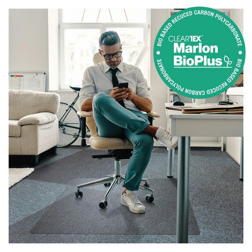 Con una resistenza agli urti due volte superiore a quella del PVC, il policarbonato BioPlus offre un'eccellente protezione a lungo termine dei rivestimenti dei pavimenti contro l'usura e i danni permanenti causati dalle rotelle delle sedie.