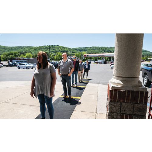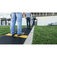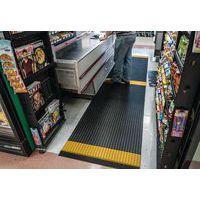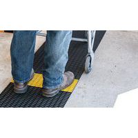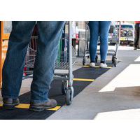 Griglia in PVC morbido nera con striscia gialla alternata di posizionamento per rispettare il distanziamento sociale. Eccellente assorbimento acustico, molto confortevole per attività in piedi grazie alla copertura delle irregolarità del suolo. Realizzata in PVC non poroso per una resistenza naturale alla proliferazione di batteri. Struttura a 2 strati incrociati, con griglia in PVC aperta per un eccellente drenaggio dei liquidi. Pulizia semplice: da sollevare o arrotolare per l'impiego con un tubo ad alta pressione. Per far rispettare agevolmente le distanze di sicurezza a visitatori, clienti, dipendenti